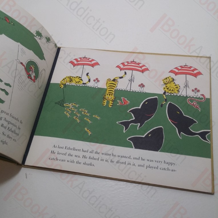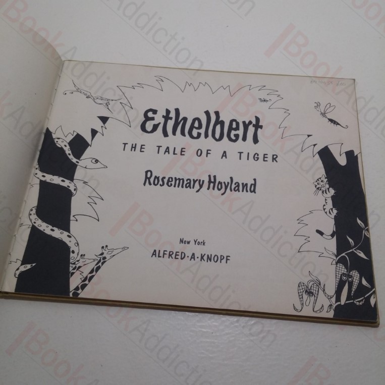 First US edition. 32pp. Yellow cloth-covered boards with black illustration on front. Boards are faded and soiled, two short pen marks, rubbed at edges, rounded and scuffed on corners and spine ends. Internally neat, clean and bright, barring the occasional small mark on two or three pages . No dust jacket. Oblong 8vo. The story of Ethelbert the curious tiger – the first in the series of books by Rosemary Hoyland.