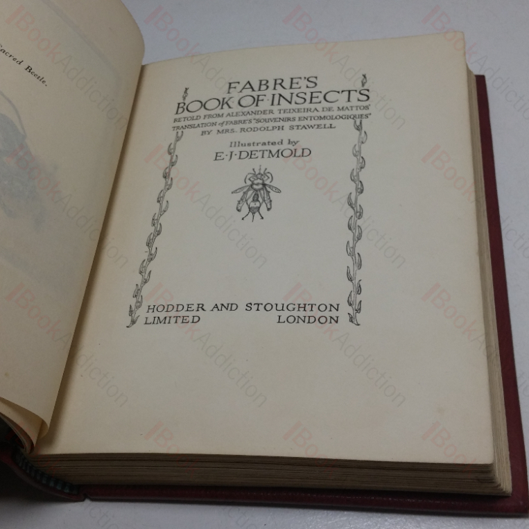 A condensed and stunningly illustrated version of Jean-Henri Fabre’s (1823-1925) ten-volume work on insects. The text base on Alexander Teixeira de Mattos’ unabridged translation of Fabre’s ‘Entomological Memoirs;, retold in abridged form by Mrs Rodolph Stawell (who also wrote ‘Fairies I Have Met’) and aimed at a younger audience. It is accompanied by twelve intricate and dreamy full colour illustrations, all by E J Detmold which compliment perfectly Fabre’s whimsical style in describing the six-legged little creatures. A sought after and scarce volume made unique by its handsome and well-crafted binding. An extraordinary copy of an acknowledged classic of illustrative art.