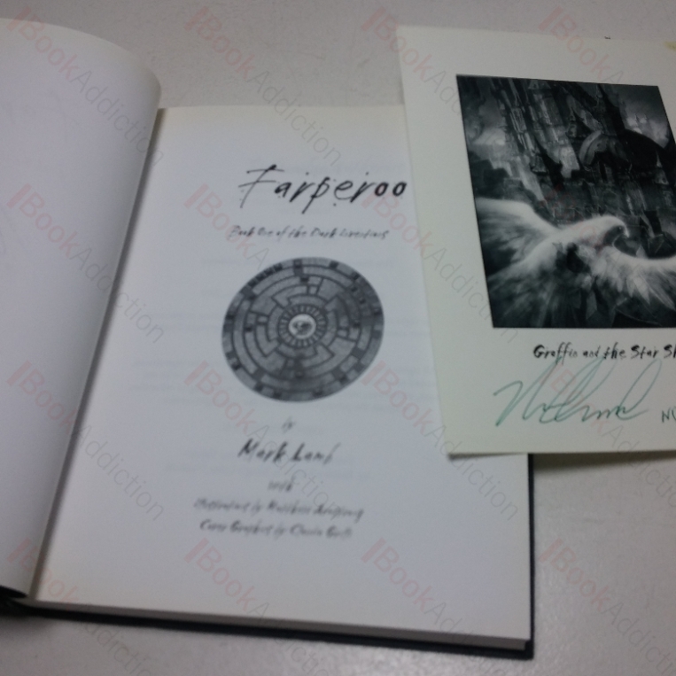 The first two volumes of Farperoo, Book One of the Dark Inventions series. Volume One: First edition, second printing, one of a limited edition. Signed by Mark Lamb on the half title page. 548pp, with black and white plate illustrations. Glazed pictorial boards. Deep green endpapers. 8vo. Boards a little rubbed at corners, slightly rubbed and bumped at extreme spine ends, else neat, clean, bright and tight throughout. Volume Two: First edition, first printing, one of a limited edtion. Signed and dated (Nov ’05) by Mark Lamb on the half title page. 549-884, [8]pp, with black and white plate illustrations. Glazed pictorial boards. Deep green endpapers. 8vo. Volume is neat, clean, bright and tight throughout. A limited edition promotional print, ‘Graffon and the Star Shadow’, signed and dated (Nov ’05) by Mark Lamb loosely laid in.
