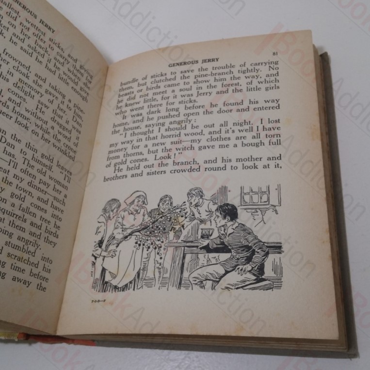 Undated. 140pp, 2pp of period advertisements, a few colour plate illustrations (inc. frontispiece). Quarter-bound with orange cloth-covered spine over pictorial paper-covered front board; some black and white illustrations. 4to. Boards worn and rear board lightly soiled. Spine foxed, heaviest towards head, spine ends moderately rubbed with cloth starting to wear through at heel. Heavy shelf wear to edges with corners heavily rubbed and rounded; paper loss. Heavy tanning and foxing on text block edges. Quite cocked. Previous owner’s name filled into ‘This book belongs to’ on front free endpaper. Heavy tanning and foxing throughout, heaviest towards beginning and end of volume. Internally, neat, clean and tight. Collection of children’s stories.
