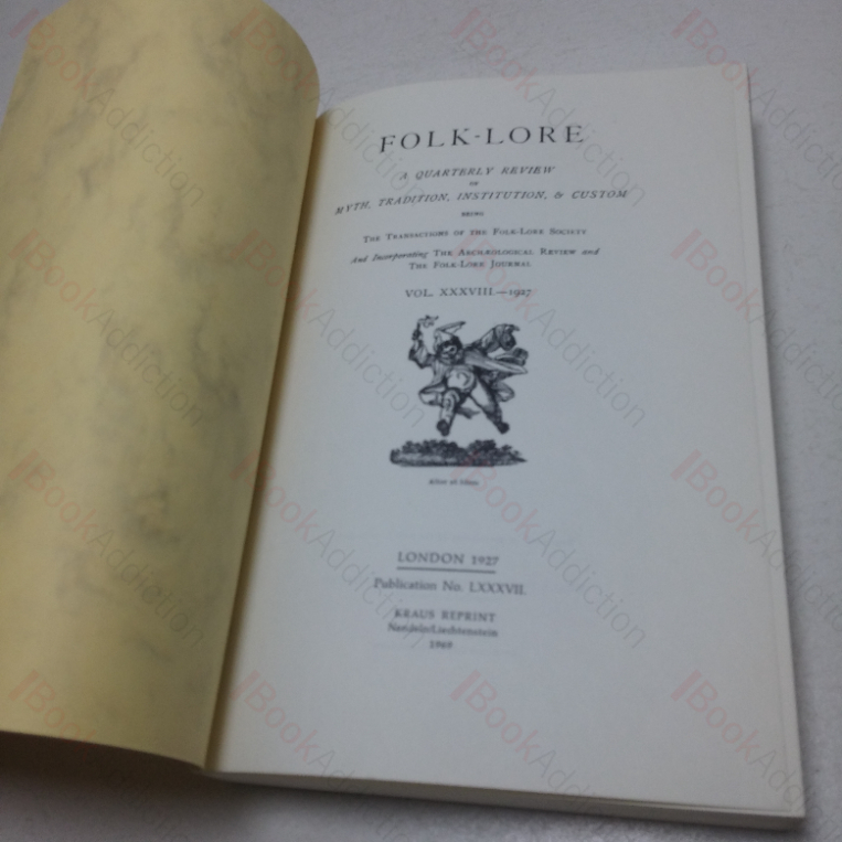 Folk-Lore, 1927, Vol. XXXVIII (38): A Quarterly Review of Myth, Tradition, Institution, and Custom; Being the Transactions of the Folk-Lore Society and Incorporating the Archaeological Review and the Folk-Lore Journal