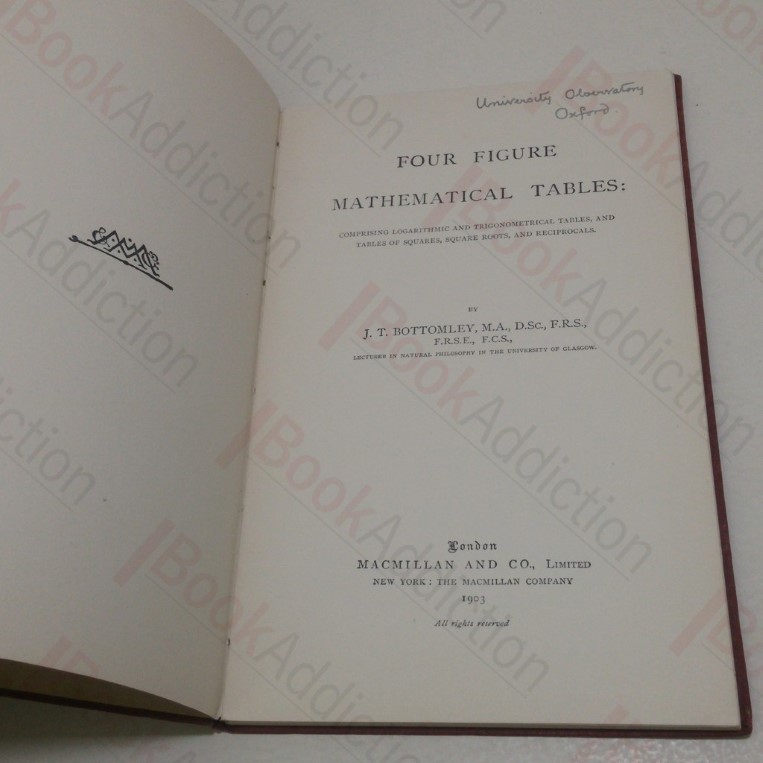 Four Figure Mathematical Tables: Comprising Logarithmic and Trigonometrical Tables, and Tables of Squares, Square Roots, and Reciprocals