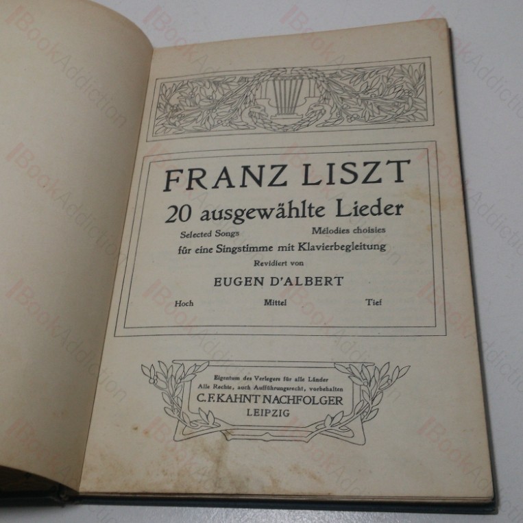 A now hard to find selection of songs, with lyrics and musical scores arranged for the piano, by Franz Lizst.  Includes Mignon Song, In Love’s Delight, The Three Gispies etc.