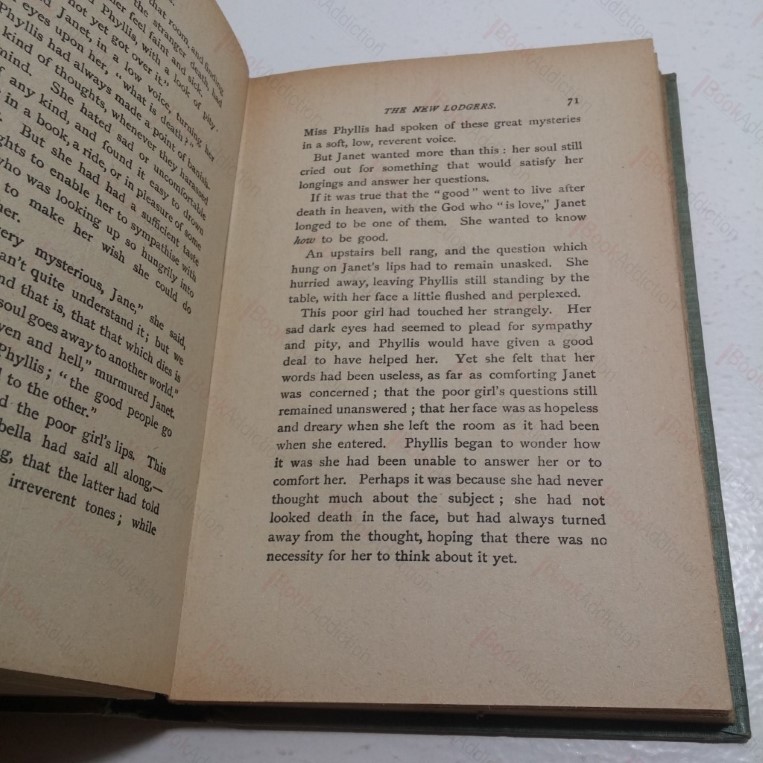 188pp. Colour plate frontispiece, title page printed in red and black. Bound in green cloth-covered boards with elaborate blind stamped decorations front and spine (boards are strong and square, a little rounded at spine tips and corners and heavily faded along upper edge and around spine). Internally there’s a little page toning and a prize presentation plate on the front free endpaper, indicating that the volume was once presented to Marion McDougall by Hamilton Academy in 1923-24.