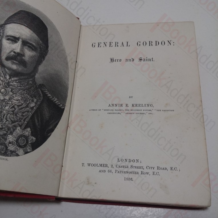 270pp; 16pp publisher’s adverts. Red cloth-covered boards; black and gilt illustrations and titles on front and spine. Sun faded spine, bumped ends; cloth fraying. Minor stains on boards. Text block edges tanning. Front hinge cracked. Prelims foxing. Internally neat, clean, bright and tight; barring occasional foxing. No dust jacket. 12mo. Biography of the famous British army officer and administrator whose death at the siege of Khartoum sparked an outpouring of grief throughout the country.