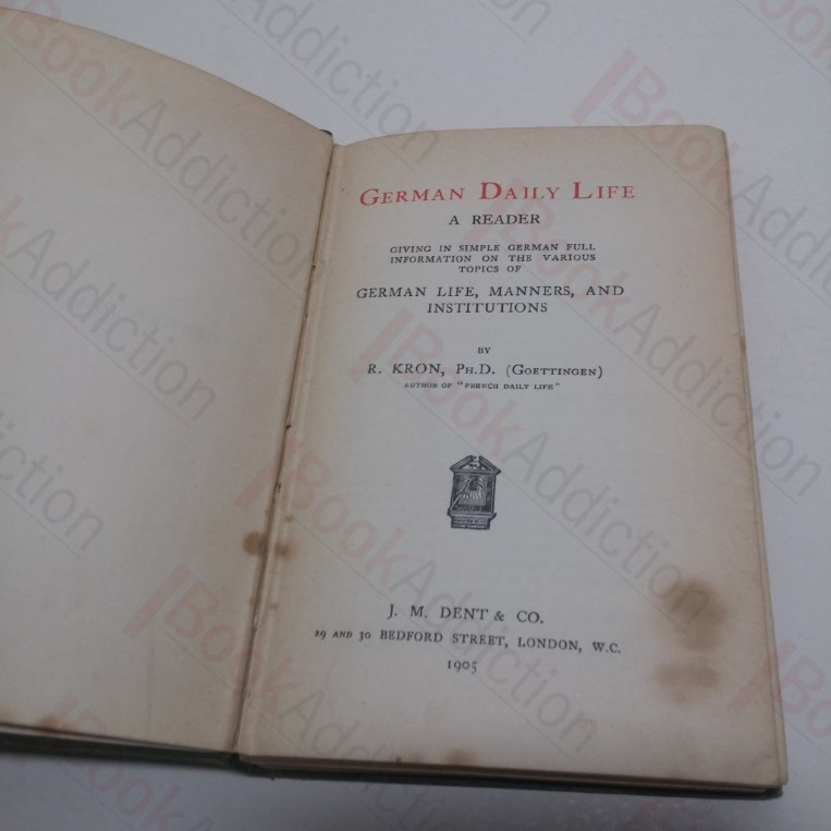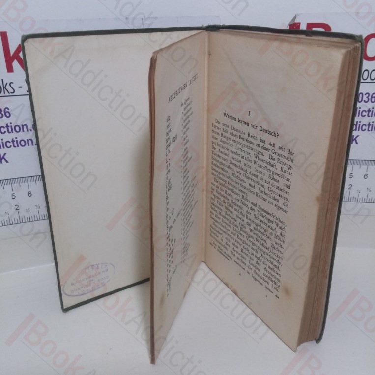 Text in English and German. xii, 284pp, 16pp publisher’s ads. Green cloth-covered boards, black design on front, black titles on front and spine. 16mo. Sun-faded spine; rubbed corners and spine ends, cloth worn through in places, some wear and staining to boards. Text block edges tanned. Previous bookseller’s rubber stamp on front pastedown, free endpapers starting to tan and fox. Gutters cracked and strained in places, volume loose. Pages ageing. Internally neat and clean, barring foxing to front prelims.