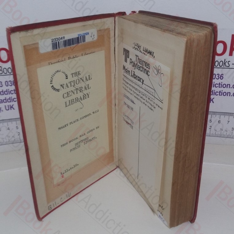 xii, 300pp, [4pp] publisher’s adverts. Red cloth-covered boards, black motif and titles on front, gilt titles on spine. 12mo. Sun-faded spine with heavy wear and some loss to spine cover and ends, cloth at joints fraying lender’s shelf number label on spine. Moderate soiling to boards, label on front cover, corners rubbed and rounded. Top text block edge dusty, all edges tanned. Endpapers tanned. Lender’s stamps, labels and markings on endpapers and prelims. Internally front hinge cracked, gutters cracked in various places, volume loos, pages tanned, more heavily at margins, otherwise pages are neat and mainly unmarked.