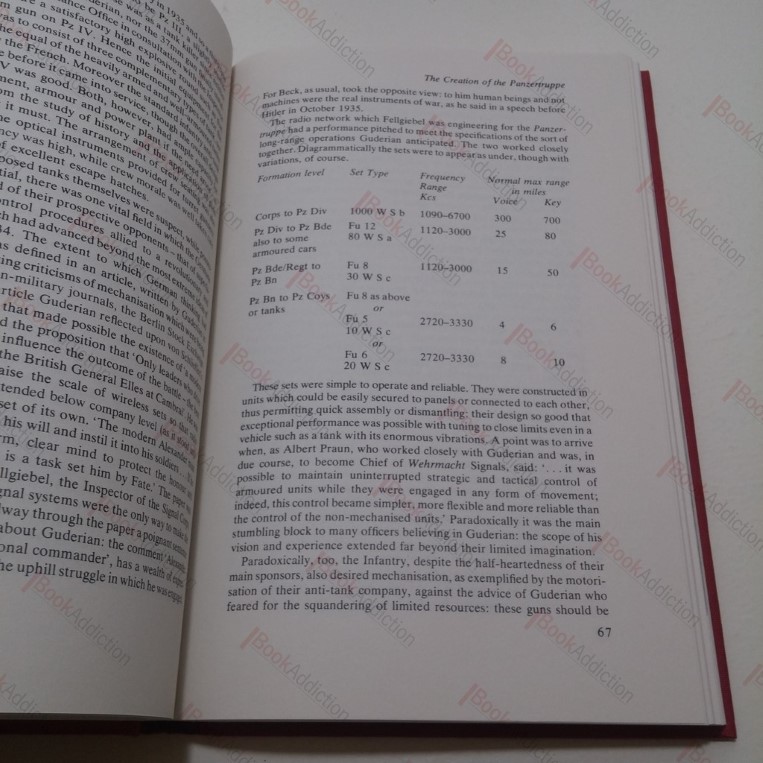 226pp, central section of black and white photographic plates. Red cloth-covered boards, gilt titles on spine. Lightly bumped spine ends. Internally neat, clean, bright and tight. Dust jacket has 1cm tear and damage to bottom front corner. 8vo. Vivid and revealing biography of Heinz Guderian, the office responsible for creating blitzkrieg in the Second World War and who built Panzer Force in the face of stolid opposition from the conservative elements of the German General Staff.