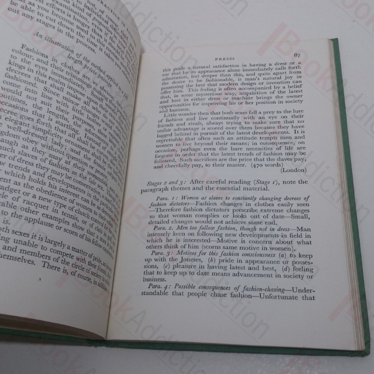 viii, 152pp. In green cloth-covered boards with black titles front and spine. 12mo. Cloth a little rubbed and rounded at corners and spine ends, cloth perhaps a tad faded. Internally neat, clean, bright and tight barring a small bump on the lower corner of the title page. A series of guided exercises and examples in English comprehension, precis and composition, designed to aid students in writing and understanding English language working towards examinations.
