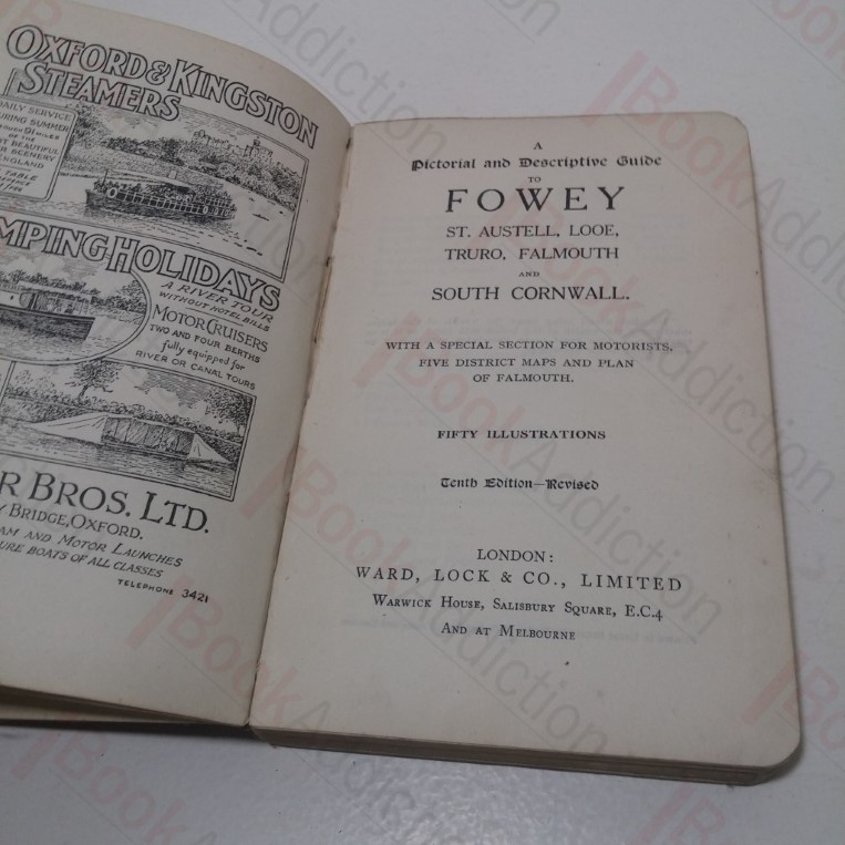 Undated. Pagination for each section; some black and white photographic plates. Red cloth-covered heavy card; black map on front, black titles on front and spine. 12mo. Sun-faded spine, cloth fraying at extremities. Wear to boards. Top text block edge dusty, all edges starting to tan and fox. Internally neat, clean, bright and tight. Includes numerous advertisements of the day.