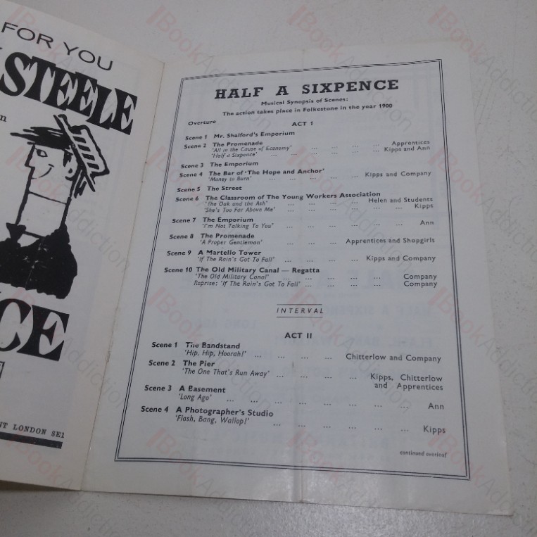 Official programme for the 1963 production of Half a Six Pence – a musical based on the H G Wells novel Kipps – at the Cambridge Theatre in London’s West End, starring Tommy Steele, Colin Farrell, Marti Webb and Anna Barry.
