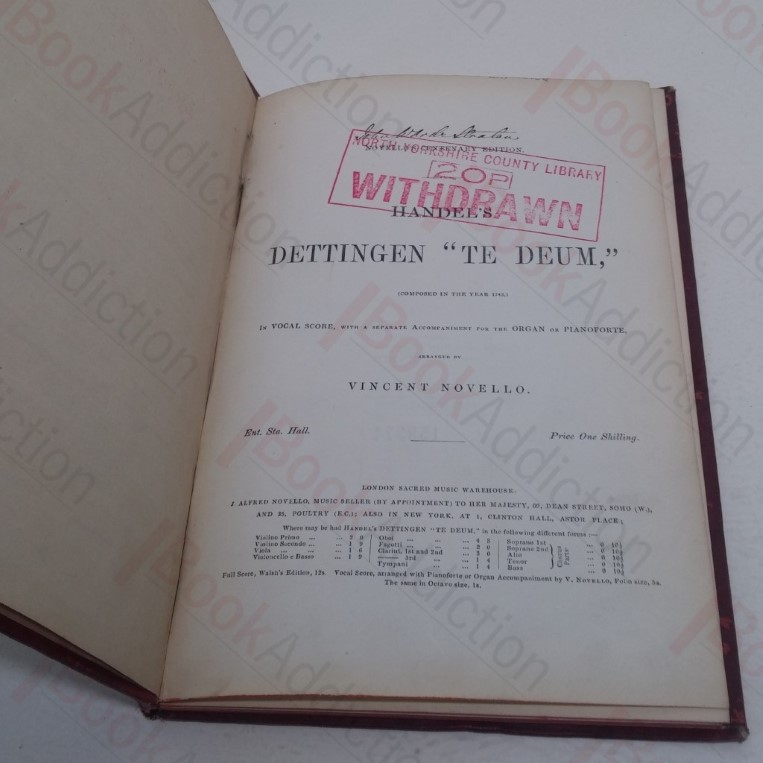 Handel’s Dettingen Te Deum (composed in the year 1743) in Vocal Score, with a Separate Accompaniment for the Organ or Piano-forte