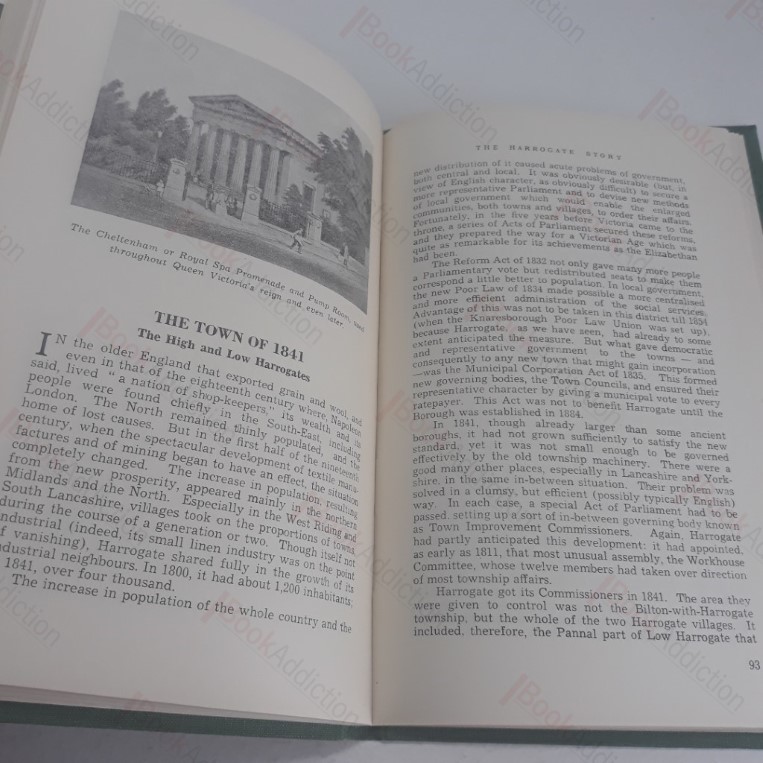 124pp, with a handful of in-text picture. Green cloth-covered boards, gilt titles on front. Rubbed spine ends. Previous owner’s name on front free end paper. Browned free end papers. Otherwise internally neat, clean, bright and tight. 8vo. History of the growth of Harrogate and its surrounding villages with section on Bilton-in-Harrogate, Harrogate in Wartime, Pre-Victorian Travel, Life in the Harrogate Workhouse, The first Church, Local Schools, etc.