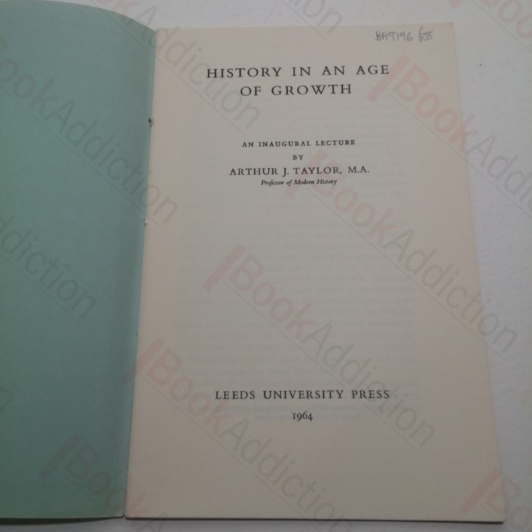 24pp saddle stitched pamphlet, in stiff card covers. Covers a little faded along spine. Internally neat, clean, bright and tight. 8vo. A J Taylor’s inaugural lecture upon being appointed Chair of Modern History at Leeds University in 1963, addressing the rationale for – and complexities of – historical study and research in the late 20th century.