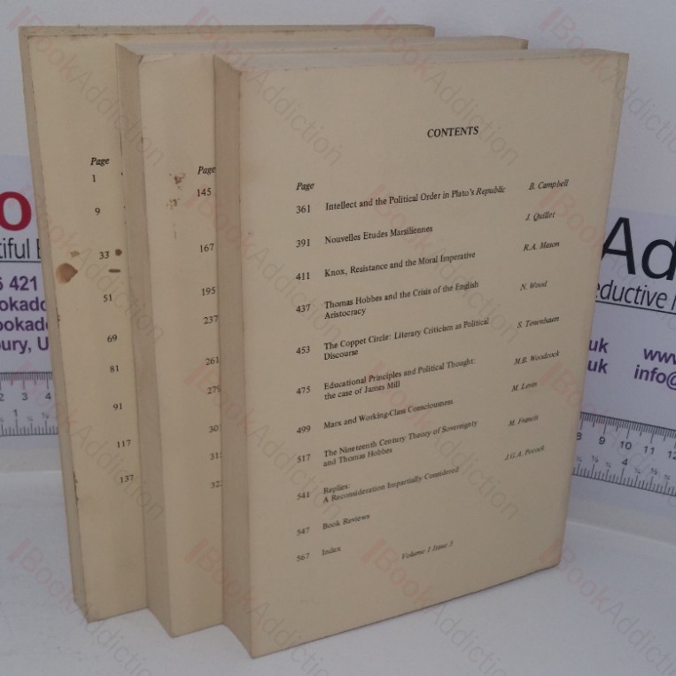 Volume III of the academic, peer-reviewed journal, History of Political Thought, issues 1-3 (complete in three issues). Printed light card covers. 8vo. Gentle edge wear and slight soiling to card covers. Internally all issues neat, clean, bright and tight