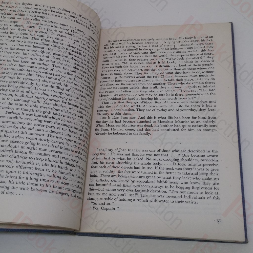 142pp. Blue cloth-covered boards, gilt titles on spine. 12mo. Front board faded towards fore-edge. Spine sun-faded. Spine ends and corners moderately rubbed and rounded. Light foxing on bottom and fore text block edges, top edge heavily foxed (just affecting page margins). Gift inscription in pen on front free endpaper, endpapers tanned, pastedowns heavily foxed, free endpapers lightly foxed. <3cm split in rear hinge. Internally neat, clean, bright and tight. Dust jacket spine heavily sun-faded, loss at ends; moderately sun-faded, chipping, lightly soiled, flaps sun-faded around top edge, interior faded along spine and folds, some light foxing. Translated by Haakon Chevalier.