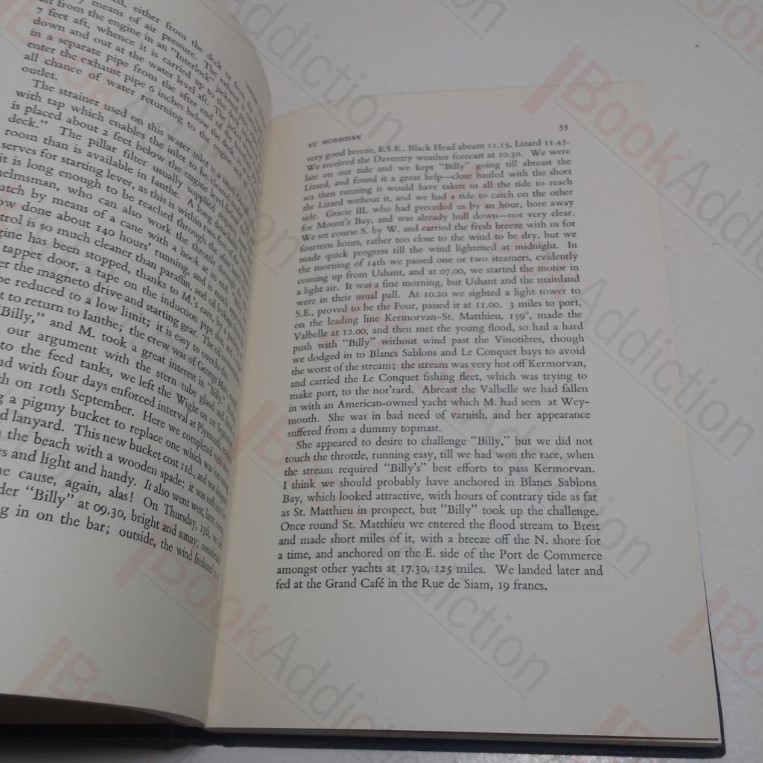 248pp. Blue cloth-covered boards, gilt titles on spine. Lightly bumped spine ends. Top text block edge sprayed blue, all edges starting to fox. Internally neat, clean, bright and tight. Dust jacket has minor loss at front bottom corner, shelf wear, chipping to edges, mirrors book damage, price unclipped. 8vo. The logs of cruises round the coast of Ireland and Western France made by the veteran President of the Cruising Association in his 7-ton cutter Ianthe II, with full sailing directions and other useful and delightful general information. Includes full sailing instructions, 47 charts and an index.