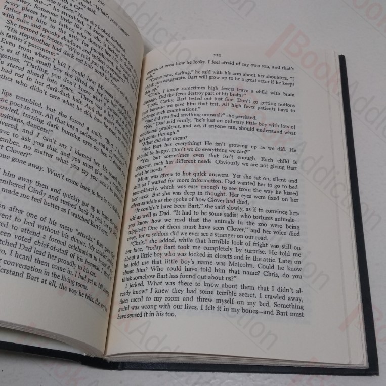 1st hardback edition (previously published, in the same year, in paperback by Pocket Books). 276pp. Quarter-bound in black cloth over black paper-covered boards with red titles on spine. 8vo. Boards gently rubbed and rounded at corners and spine ends. Upper text block edge lightly toned. Internally neat, clean, bright and tight. In its original dust jacket, gently bumped along upper edge, a little rubbed at base spine and corners. Dust jacket states book club edition on inner front flap, as called for. Dust jacket now protected in an archival quality Mylar wrapper fitted without the use of tape or adhesives. The third book in V C Andrews’ Gothic horror Dollanganger series.
