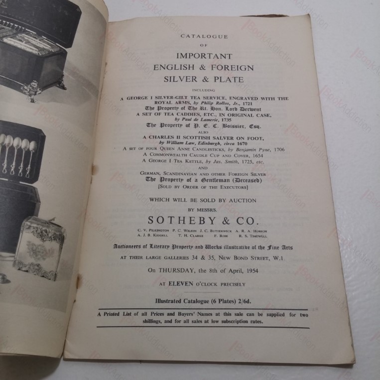 Impostant English and Foreign Silver and Plate (Auction Catalogue, Sotheby’s, London, UK, 8 April 1954)