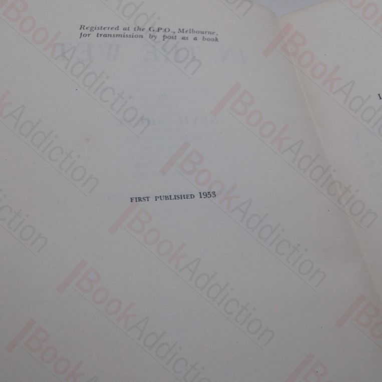 First edition, first impression, Australian issue. 352pp. In emerald green cloth covered boards with titles on spine. 12mo. Boards have scattered small marks and a little mottling, gently rubbed and rounded on corners and spine ends. Text block edges toned. Strip tanned on endpapers, else internally neat, clean and tight. In its original illustrated dust jacket, price clipped, rubbed on edges, with a little chipping and scuffing on corners and folds, some loss at spine ends.