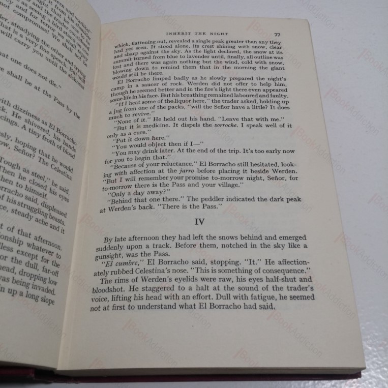 408pp. Red cloth-covered boards, faded gilt titles on spine. sun faded spine, bumped ends. Text block edges foxing. Foxing to prelim pages; otherwise, internally neat, clean, bright and tight. No dust jacket. 8vo. Novel set in a village called San Cobar in the Andes, where the villagers live free from corruption and materialism – into this village comes an escaped Nazi Kurt Werden, who takes the villagers goodness for weakness and wreaks havoc upon a once perfect life.