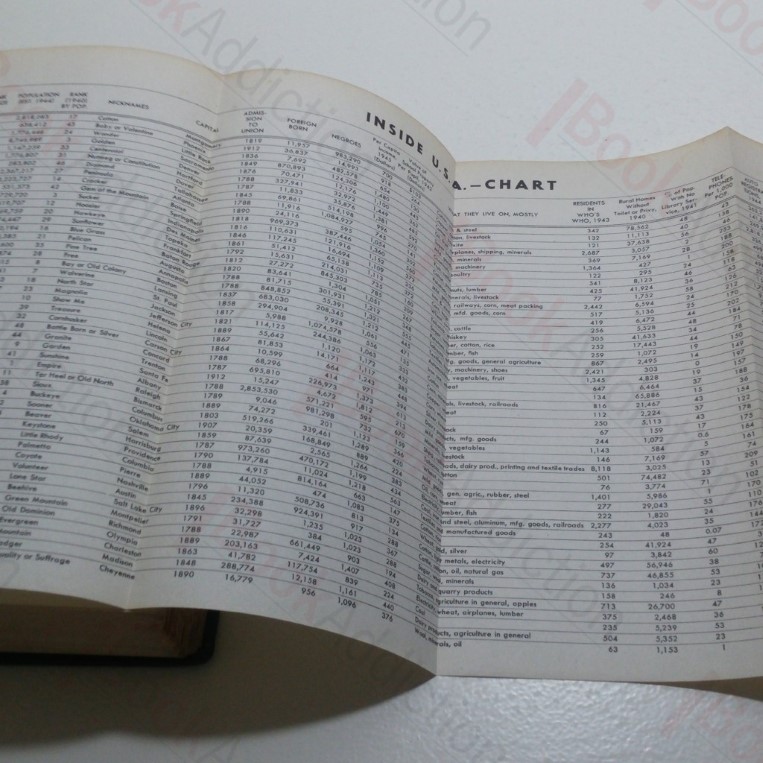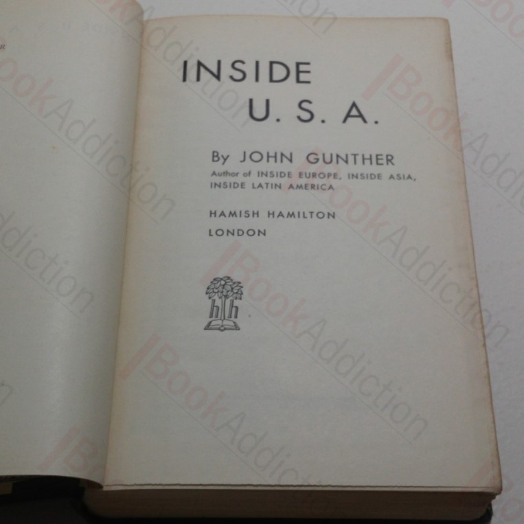 xviii, 980pp. Black cloth-covered boards; gilt titles on spine, blind embossed border on front. Sun faded spine; ends bumped, cloth starting to fray. Outer edge untrimmed. ‘Map’ endpapers. Internally neat, clean, bright and tight. No dust jacket. 8vo. Though an American citizen Gunther wrote his book as an outsider, having been away from the States for 10 years, his aim was to tell the story of modern America and he set out to tour the country and interview its prominent citizens, including business leaders, politicians, writers and academics. This is the First British Edition which was printed in the US due to post-war paper shortage.