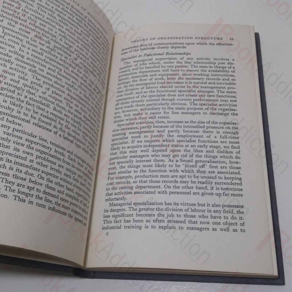 186pp. Grey cloth-covered boards; gilt titles on spine. 8vo. Lightly rubbed spine head. Text block edges just starting to tan. free endpapers starting to tan. Internally neat, clean, bright and tight. Dust jacket has 1cm closed tear front bottom, very light shelf wear, mirrors book damage. Covers the development of scientific management, planning and policy making, staffing, managerial control, incentives and morale, public relations and the responsibility of managers.
