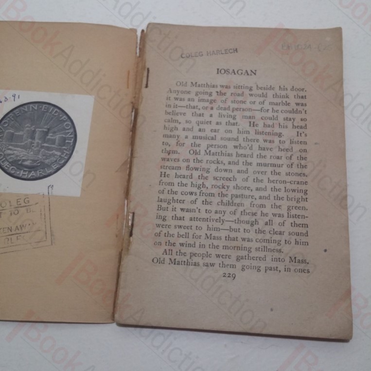 Not dated but circa 1910. pp229-309. Contains Iosagan, The Priest, Barbara and Eoineen of the Birds. In plain heavy paper wrappers. Wrappers rubbed, chipped at edges, crack almost the length of spine, leaving front cover partially – almost wholly – detached, tanned and a little marked. Internally some mild tanning, bookplate and stamp of Harlech College inside front cover, and smaller stamp in first page and inside rear cover, no title page, edge worn. An important little book, being Padraic Mac Pairais’s first published book of short stories. Pearse was Chairman of the Provisional Government in Ireland, signed the Proclamation of the Irish Republic, which he read publicly on Easter Monday, 25 April 1916 outside the Government Post Office in Dublin. Pearse believed that language was an inherent part of nationhood and national identity.