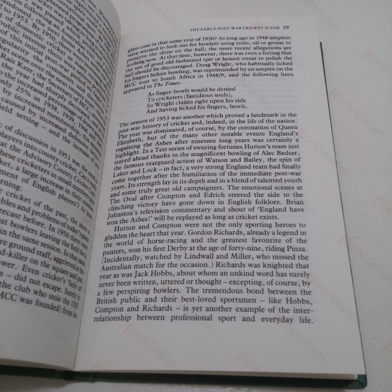 160pp. Green cloth-covered boards, gilt titles on spine. Light foxing to text block edges. Internally neat, clean, bright and tight. Dust jacket has some shelf wear, price unclipped. 8vo. Looks at the direction cricket is taking and the ‘Americanization’ of the game since the carefree days of Compton and Edrich, etc.