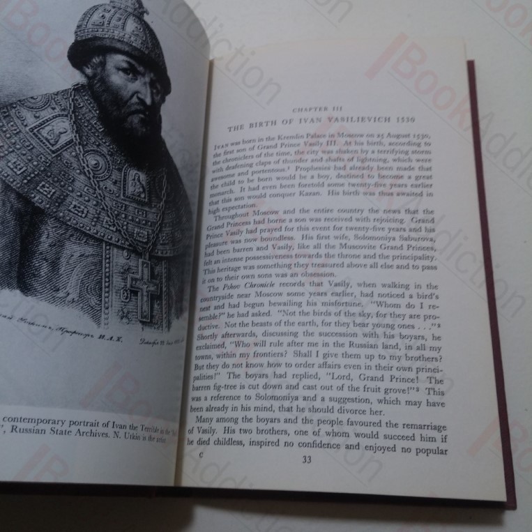 Not dated but circa 1965. xiv, 15-276pp, lightly illustrated. In red cloth-covered boards with gilt titles on spine (just a little worn and rounded at corners and spine ends). Internally neat, clean, tight and bright. In its original dust wrapper, illustrated (a little bumped at edges, mildly sunned on spine). 8vo. A reassessment of the life and work of Tsar Ivan the Great.