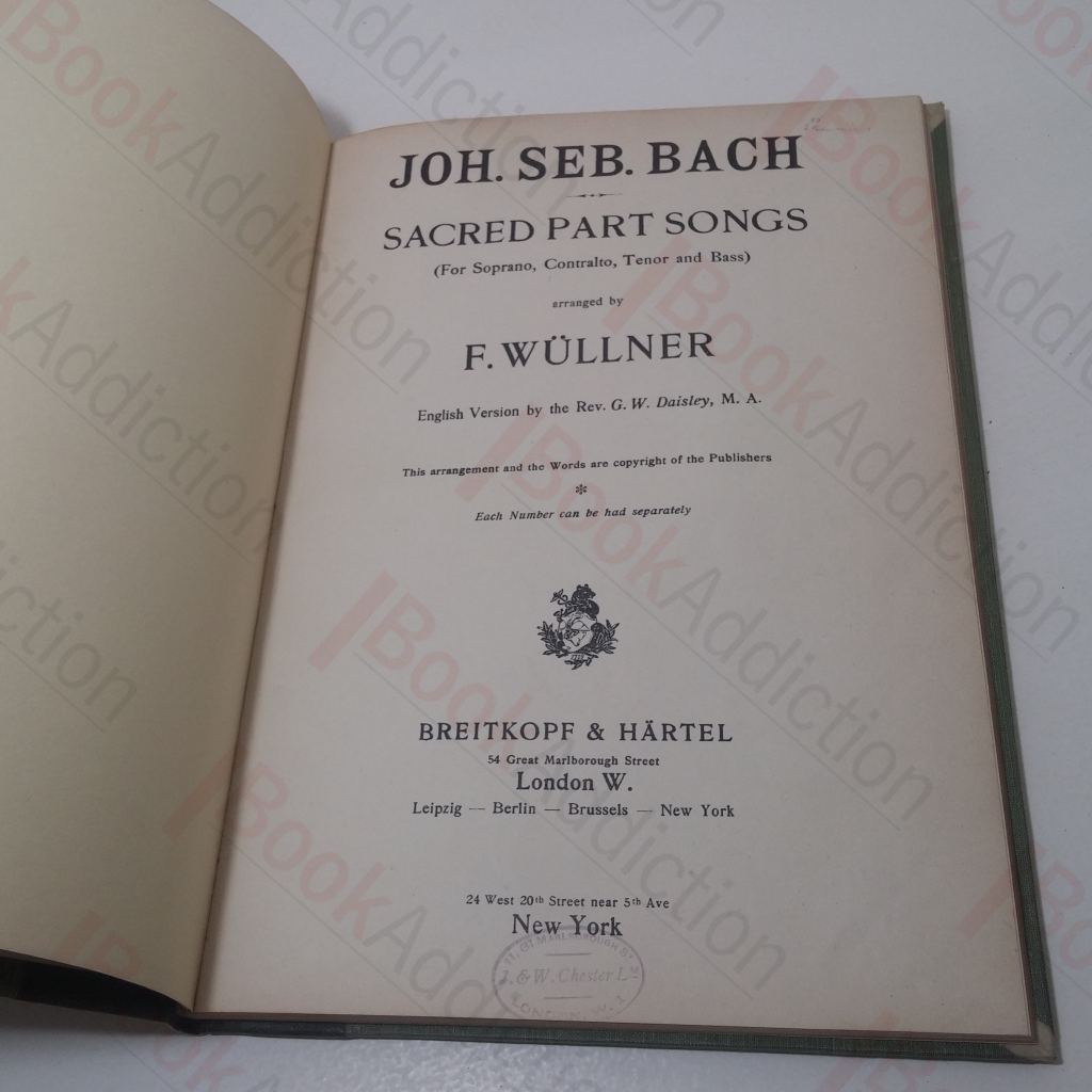 Joh Seb Bach [Johann Sebastian Bach]: Sacred Part Songs for Soprano, Contralto, Tenor and Bass