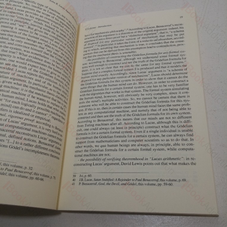 A collection of essays in response to and updating John R Lucas’s argument that the human mind could not be thought of in mechanical terms. Lucas’s anti-mechanism argument has fostered disputes and had a significant impact on the mechanical simulation of the human mind.