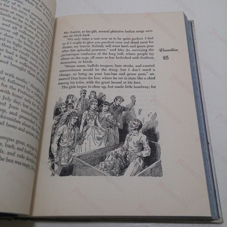 358pp. Rich blue endpapers, colour plate frontispiece, 6 further colour plate illustrations and vignettes and decorations in text. Upper and fore- text block edges sprayed blue. The special contents of this edition of the classic children’s tale, Jo’s Boys, are copyright 1949. Illustrated cloth-covered boards with gilt titles on blue printed spine label (boards a little rubbed and rounded at corners and spine ends). Internally neat, clean, bright and tight barring corner crease last three leaves. Beautiful edition. Issued by Grosset and Dunlap in 1949 as part of its Illustrated Junior Library series.