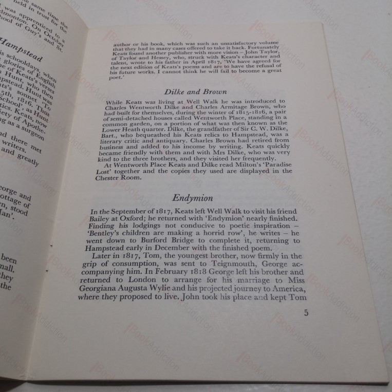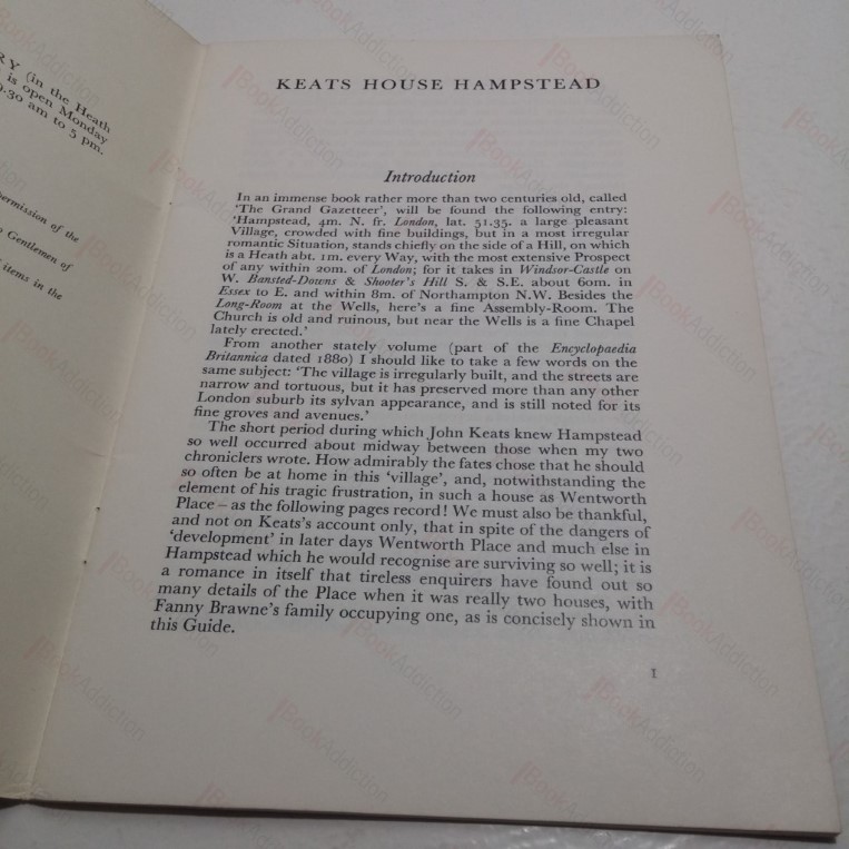 20pp, some black and white photographs, house plan. Guide to the house and museum dedicated to John Keats in Hampstead, North London.