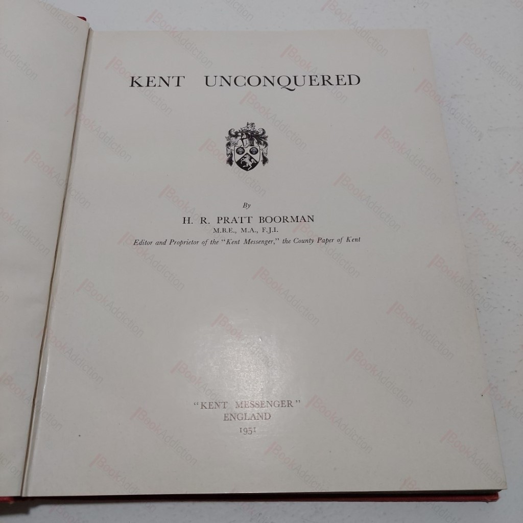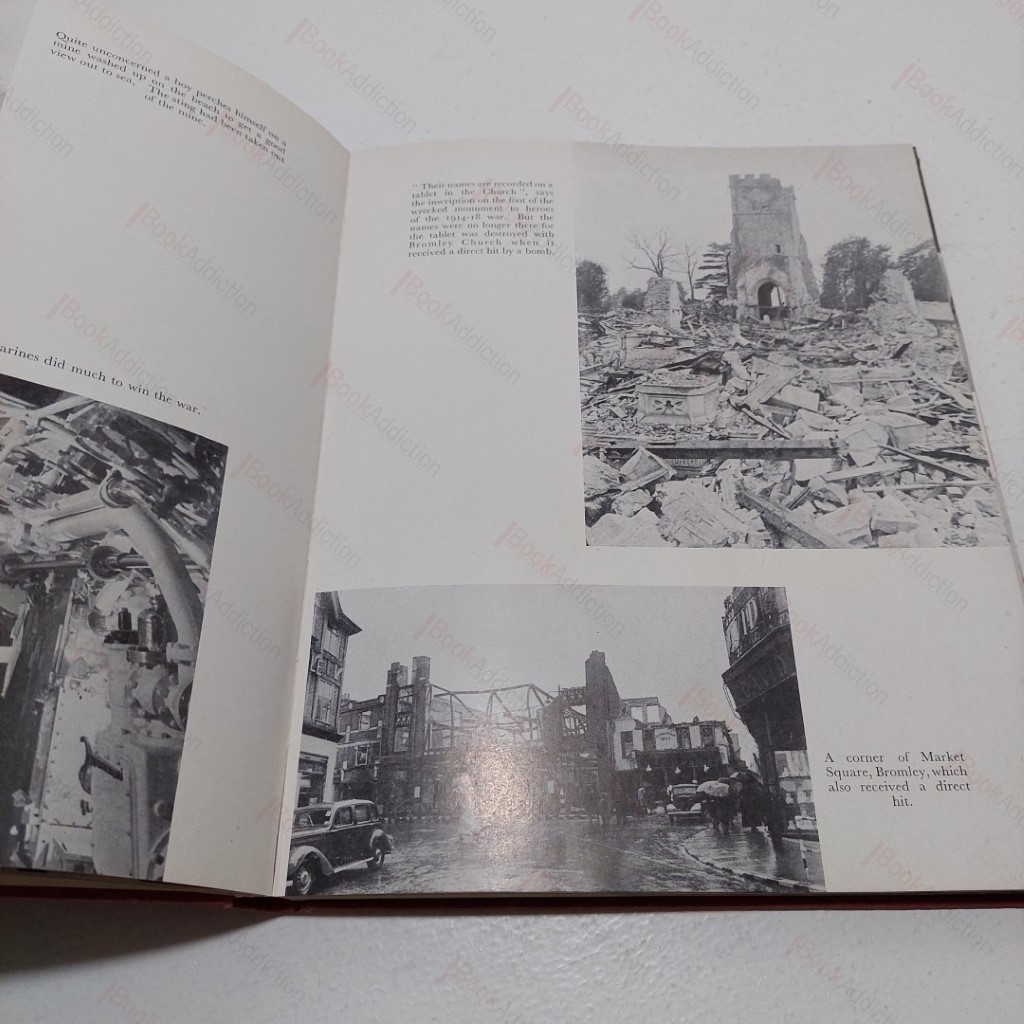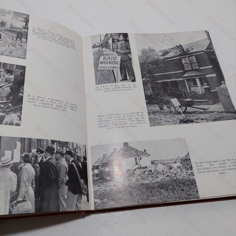 Unpaginated; full of black and white photographs. Red cloth-covered boards with gilt titles on spine. 4to.  Rubbed spine ends, cloth worn. Rubbed bottom corners and cloth worn. Clear signs of shelf wear, especially on verso. Lower part of front cover sun faded. Binding a little loose. Toned free end papers. A photographic account of the destruction in Kent during the second world war.