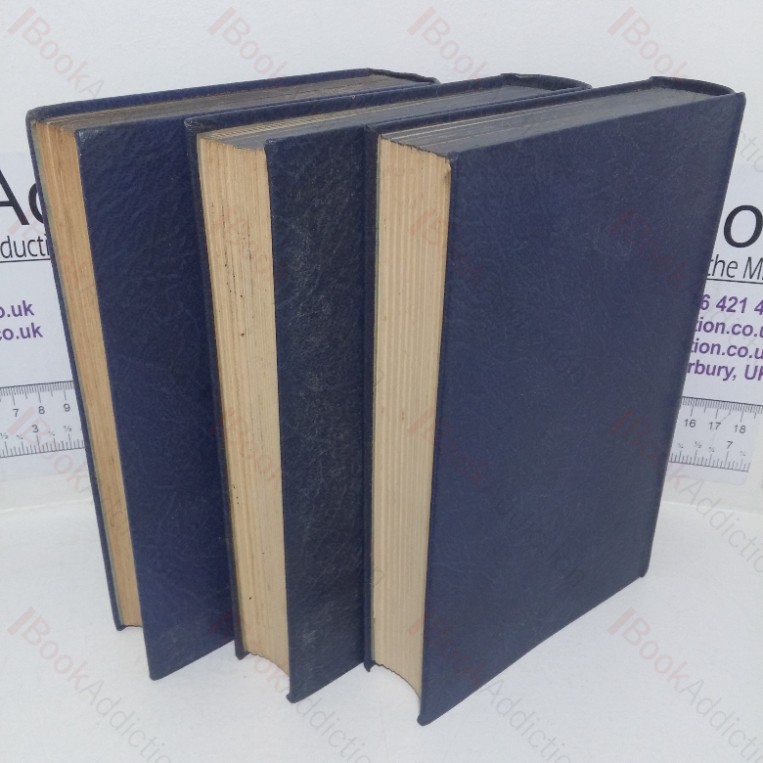 Seven novels in three volumes. Publication date not stated but circa 1930. All three volumes in matching bindings of deep blue cloth with blind embossed decorations and gilt lettering on the spine. Marbled blue endpapers. Top edges sprayed blue. 8vos. Covers are lightly shelf worn, gently pushed at corners and spine ends. Text block edges a little toned and spotted. All three volumes have a previous owner’s name neatly inked on flyleaf, and a hint of toning in extreme page margins, else internally neat, clean and bright. All square and firmly bound.