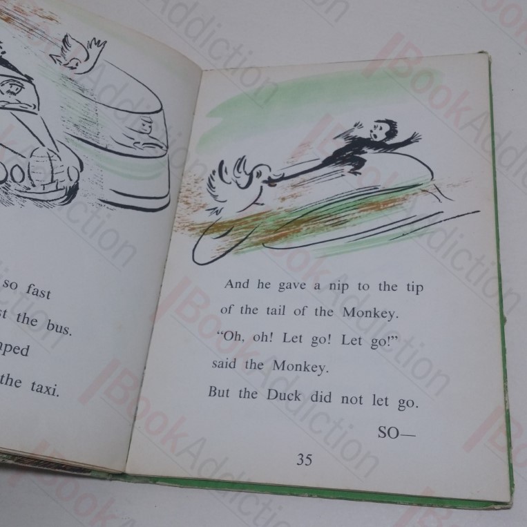 64pp, two colour illustrations throughout. Quarter bound in green cloth over illustrated paper-covered boards. 8vo. Sun-faded spine, heavily rubbed extremities with paper worn through. Text block edges tanning. Gift inscription on front pastedown; previous owner’s name on front free endpaper, clear signs of use throughout.