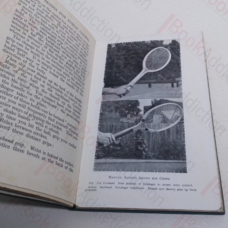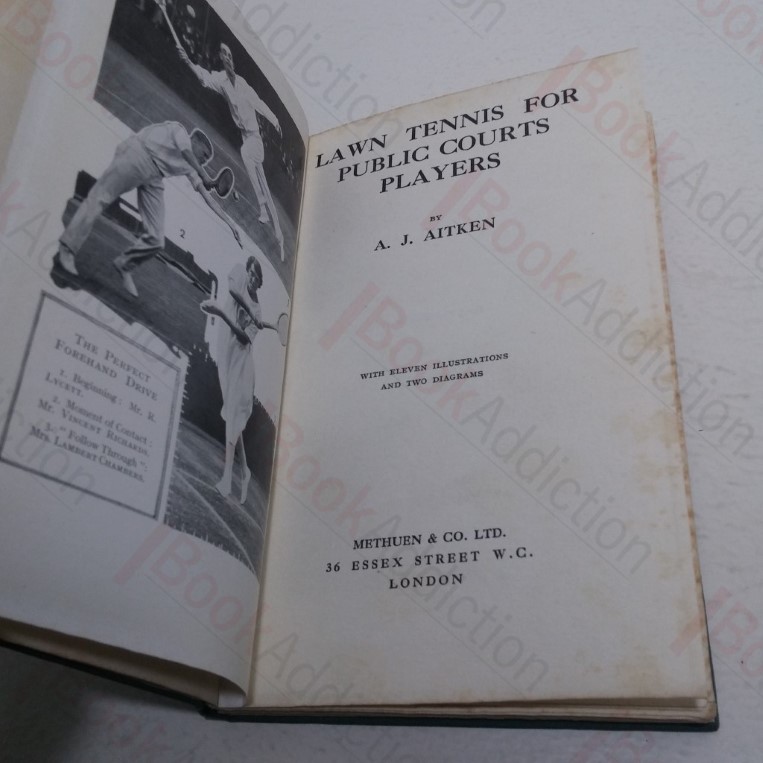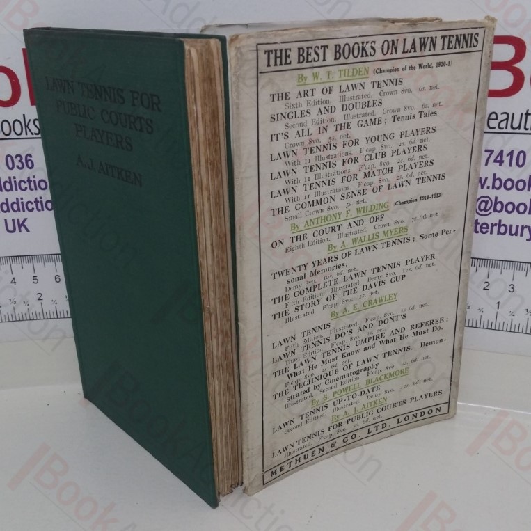 1st edition, 1st impression. vi, 58pp, plus 8pp publisher’s catalogue at rear. With monochrome plate frontispiece and further black and white plate illustrations, diagrams in text. In green cloth-covered boards with black titles front and spine. 12mo. Text block edges a little dusty and spotted. Internally neat, clean, bright and tight barring hints of toning on prelims. In its original dust jacket, worn and rubbed at edges and folds with minor loss at head of spine. A wonderful, evocative guide to the game of lawn tennis, now hard to find, especially in its dust jacket.