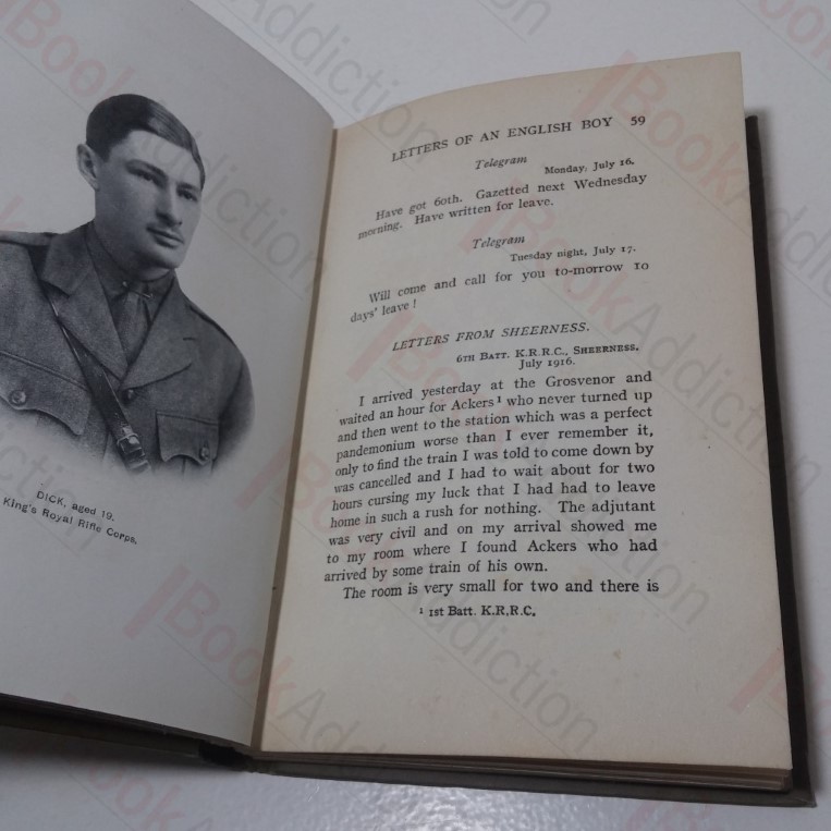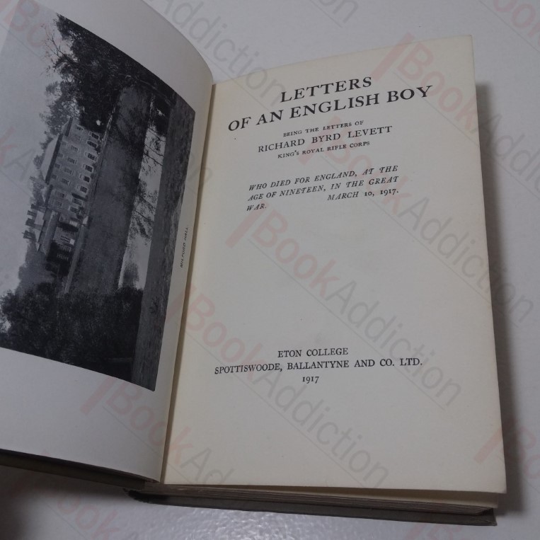 194pp, eight black and white plates (inc. frontispiece). Green cloth-covered boards; faux corner design on boards, gilt titles on front and spine. 12mo. Sun-faded spine, lightly rubbed corners and spine ends. Top text block edge dusty, remaining edges starting to tan and fox. Internally neat, clean, bright and tight. The Letters of Richard Byrd Levett, King’s Royal Rifle Corps, who died for England at the age of 19, in The Great War.
