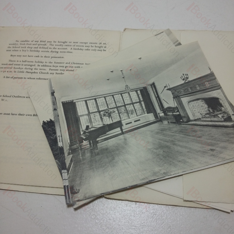 The prospectus for Little Hampden Manor, a boarding school for boys near Great Missenden in Buckinghamshire, apparently dating from 1969, as there is also a letter from the headmaster, E W Uff, referring to the enclosed prospectus and dated February 1969. The prospectus gives information about the school, its curriculum and extra-curricula offerings; regulations, clothing and fees etc. The photographs in the rear pocket all show scenes from the school – its buildings, classrooms, dormitories, playing fields and so on.
