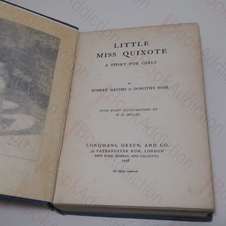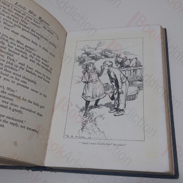 238pp, [4]pp publisher’s ads; eight black and white plates (including tissue-guarded frontispiece). Blue cloth-covered boards; black and white illustrated pasted on front, black titles on front and spine. 12mo. Sun-faded spine, rubbed spine ends, cloth torn with loss at head. Top text block edge dusty, remaining edges starting to tan and fox. Endpapers starting to fox and tan. Previous owner’s name on front free endpaper. Gutters occasionally strained, volume a little loose. Internally neat, clean and bright.