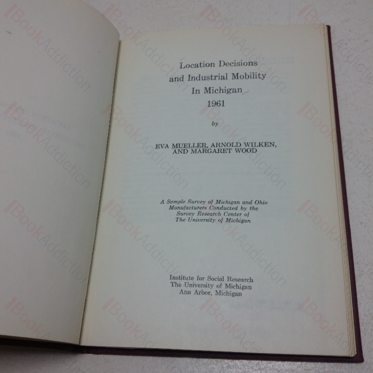 Location Decision and Industrial Mobility in Michigan, 1961 – A Sample Survey of Michigan and Ohio Manufacturers Conducted by the Survey Conducted by the Survey Research Centre of The University of Michigan (Survey Research series, No. 22)
