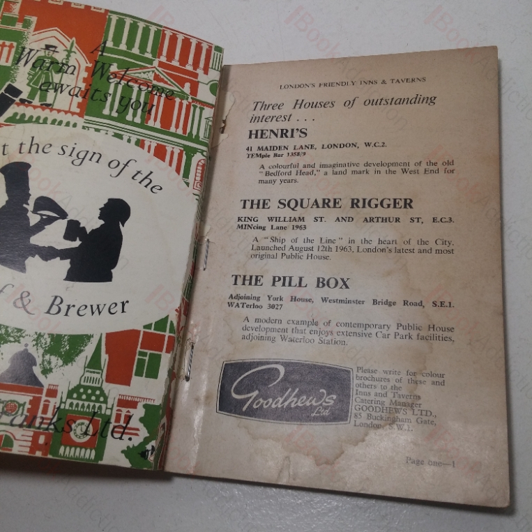 Although there have been books published on London’s drinking establishments, this one has the benefit of being both hard to find and highly unusual. It is a 1960s guide to welcoming inns and taverns, arranged on an area by area basis, but the tone is highly personal, witty certainly, but often as much about the author’s personal preferences as the inns and taverns themselves, and the information provided detailed to the point of trivial. It does though constitute a wonderful snapshot of a certain type of 1960s drinking culture and the institutions that facilitated it – even naming the landlords and detailing some of their peccadillos.