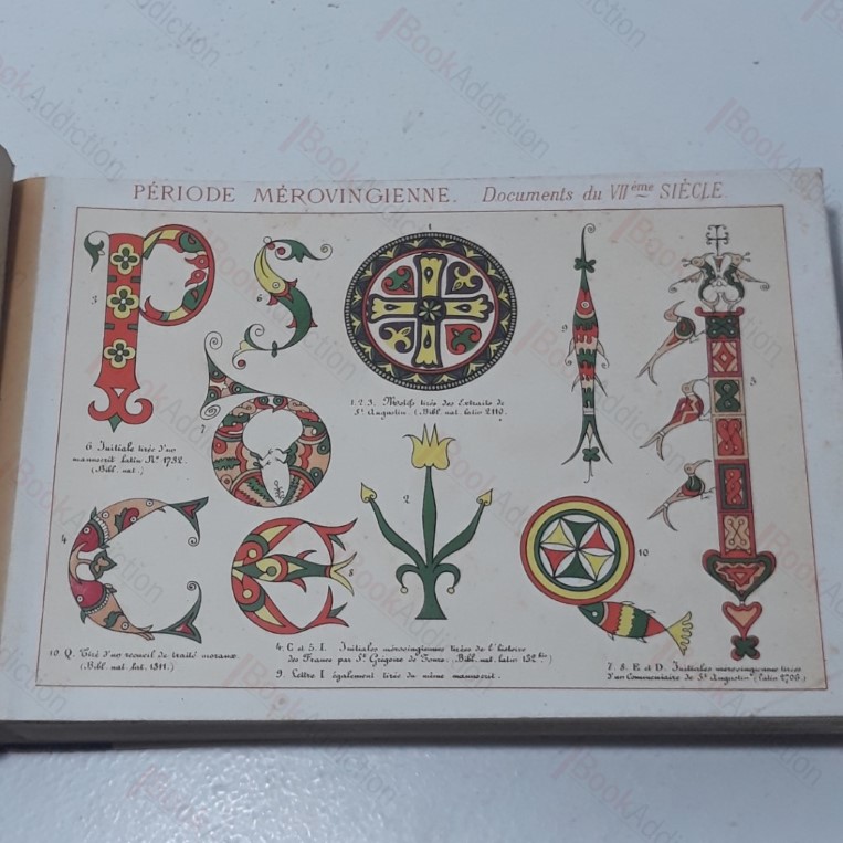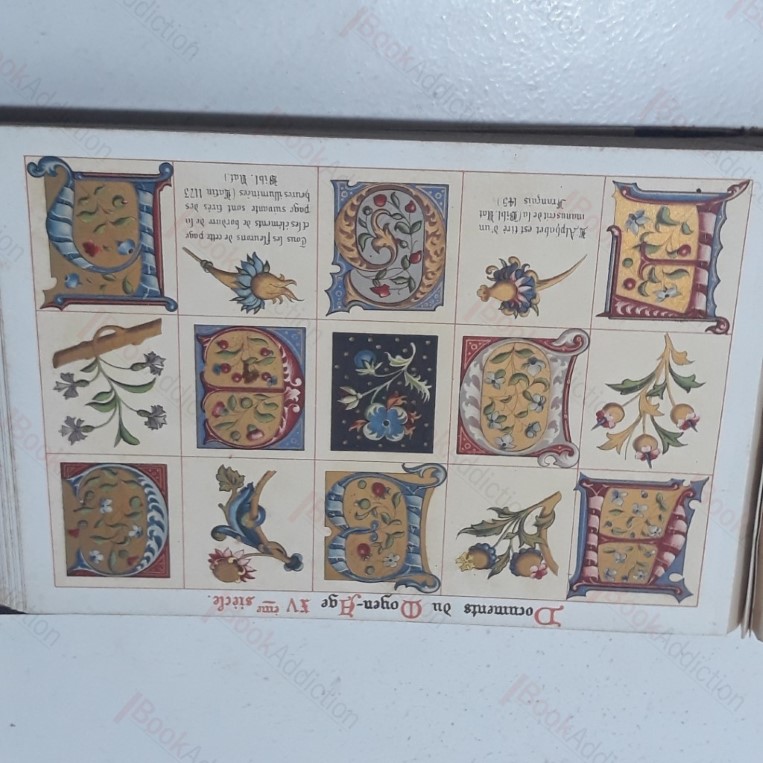 Not dated but c 1880. Oblong. Quarter bound in calfskins over cream boards (heavily worn and scuffed on leather, card covers a little discoloured). Ownership stamp on slightly faded endpapers. Binding a little strained with cracked gutter between rear endpapers. The first two plates have mild spotting, the rest are mostly gleamingly bright. 96 chromo-lithographic plates in arranged in six sections, reproducing designs, initials capitals and illuminated decorations in documents from the Merovingian period (7th century) to those of the 18th century, often in Louis XVIth style. What little text there is, is in French. Magnificent plates, and an essential guide to the style of document decoration through the ages. Very hard to find volume. Oblong 8vo.