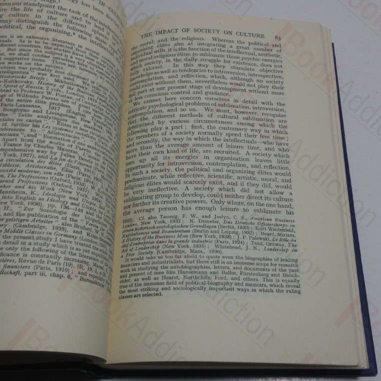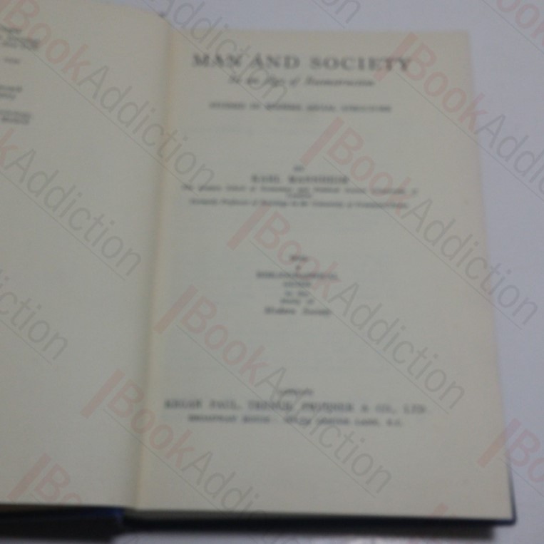 xxii, 470pp. Blue cloth-covered boards, gilt titles on spine. Bumped spine ends. Text block edges just starting to fox. Internally neat, clean, bright and tight. No dust jacket. 8vo. Studies in modern social structure with a bibliographical guide to the study of modern society. Includes an extensive bibliography, index of subject matter, and index of names.