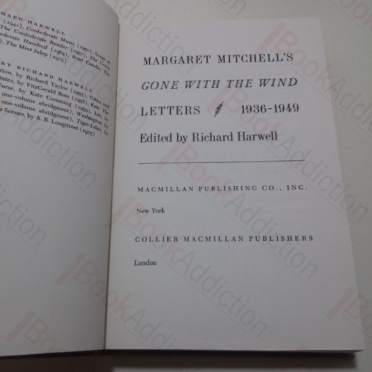 442pp, central section of black and white photographic plates. Brown cloth-covered boards, gilt titles on front and spine. Bumped spine ends. Top and bottom edges sun faded. Internally neat, clean, bright and tight. Dust jacket has some minor shelf wear, top rear sun faded, mirrors book damage, price unclipped. 8vo. The agony and ecstasy of Margaret Mitchell’s phenomenal overnight success is told through her personal correspondence which overwhelmed her – even as late as 1949 two secretaries were required to keep on top of the mass of correspondence created. .