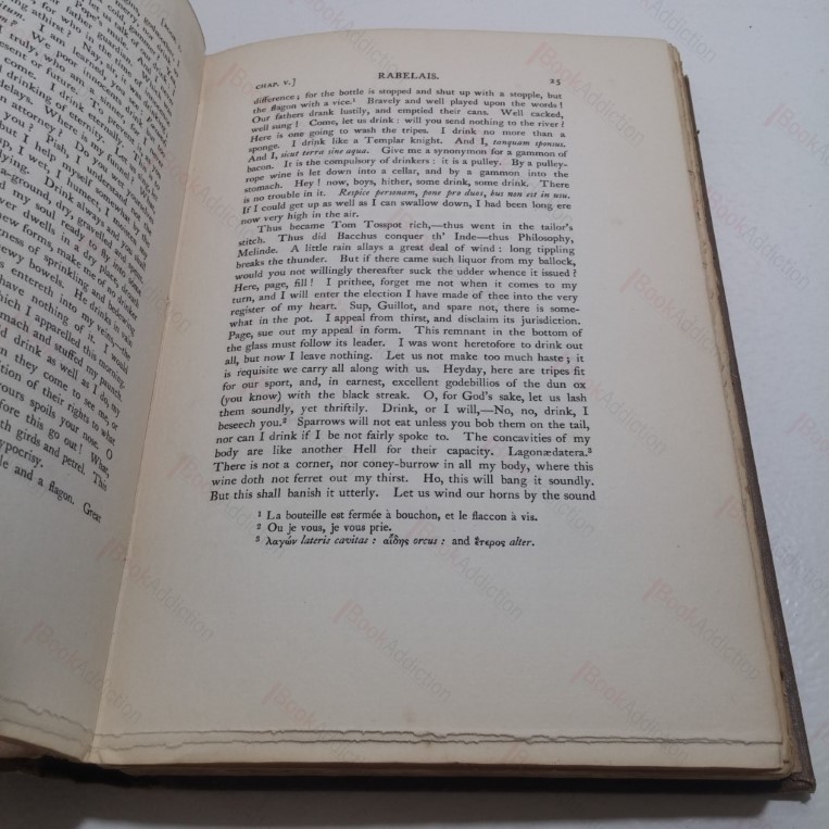 240pp; some in-text illustrations, four plates including frontispiece (tissue guarded) all black and white. Brown cloth-covered boards, gilt titles on spine. Sun faded spine and boards, worn. Bumped spine ends. Lightly bumped bottom corners. Gilt top-edge, other edges uncut. Free endpapers tanning, else internally neat, clean, bright and tight. 8vo. Translated into English by Thomas Urquhart of Cromarty and Peter Antony Motteux.