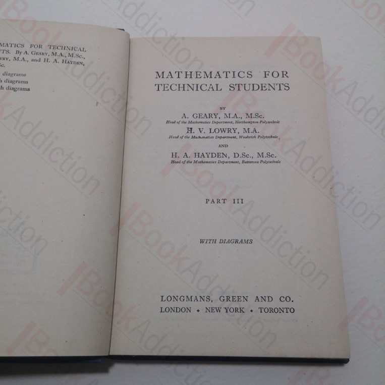 372pp, logarithm tables. Blue cloth-covered boards, black titles on front and spine. Sun faded spine, lightly bumped ends. Top text block edge dusty. Internally neat, clean, bright and tight. No dust jacket. 12mo. A school mathematical text book. Includes answers.