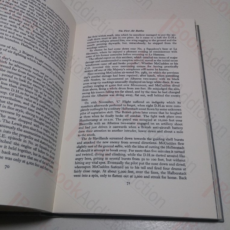 224pp, 16pp of black and white photographic plates. Grey cloth-covered boards, gilt titles on spine. 8vo. Bumped spine heel. Very top edge of front board sun fading. Previous owner’s bookplate and small ’40’ in red Biro top corner of front free endpaper. Internally neat, clean, bright and tight. Dust jacket spine sun faded, shelf wear, chipping to edges, mirrors book damage, price unclipped. With a foreword by ‘Johnnie’ Johnson. Looks at the life and war record of one of the legendary ‘Aces’ of the First World War who was rated the supreme marksman and perfectionist whose tactics encouraged World War Two pilots such as Bader, Tuck, and ‘Sailor’ Malan to ignore ‘what the book said’ and fell back on the fluid and sensible tactics evolved by McCudden.