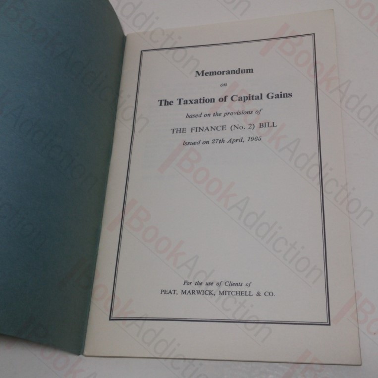 Memorandum on The Taxation of Capital Gains Based on the Provisions of The Finance (No. 2) Bill Issued on 27th April, 1965